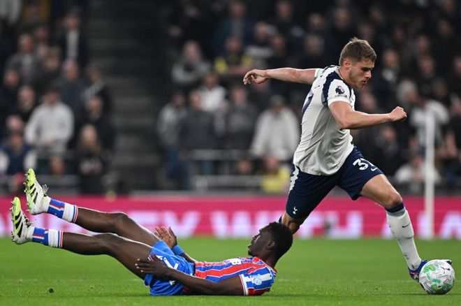 英超第29轮的一场比赛展开争夺,热刺在主场迎战水晶宫。本场比赛热刺排出了3421阵型。索兰克顶在最前面。穆阿尼和特尔在他身后。阿奇-格雷、帕利尼亚、萨尔和索萨4中场联袂出击。波罗、凯文-丹索和范德芬3后卫首发出战。维卡里奥担任首发门将。里沙利松、哈维-西蒙斯和加拉格尔坐在替补席待命。